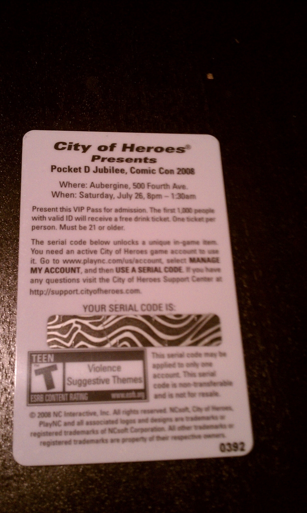 This costume change power was given to people who attended the Comic Con: International in 2008 and received one of one thousand passes to the Pocket D Jubilee which took place at Aubergine on July 26, 2008.